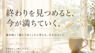 藤井風の「満ちてゆく」「帰ろう」「grace」などの楽曲から感じた“終わり”と“生き方”。60代からの視点で、手放すことで満ちていく感覚を綴ります。